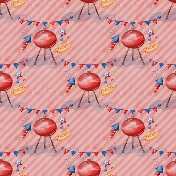 The Pink Grillin' Party Fabric is part of the Celebrate Freedom Fabric Collection printed by Sew Creative Fabrics. Digitally Printed on 100% cotton and measures 43-44" wide.