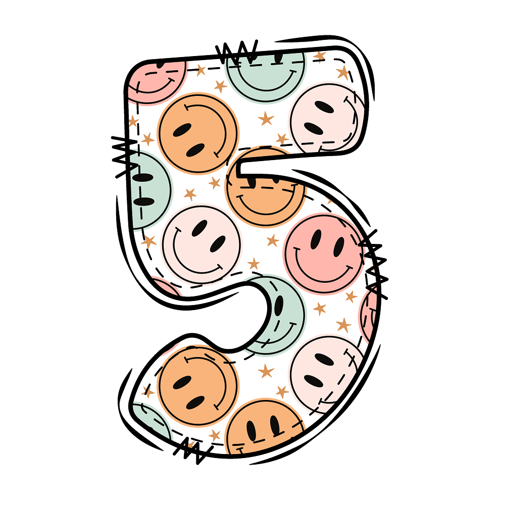 The Groovy Doodle Smiley ''5'' Fabric Panel is a part of the Groovy Doodle Alphabet Fabric Collection printed by Sewing Parts Online. Digitally Printed on 100% cotton.