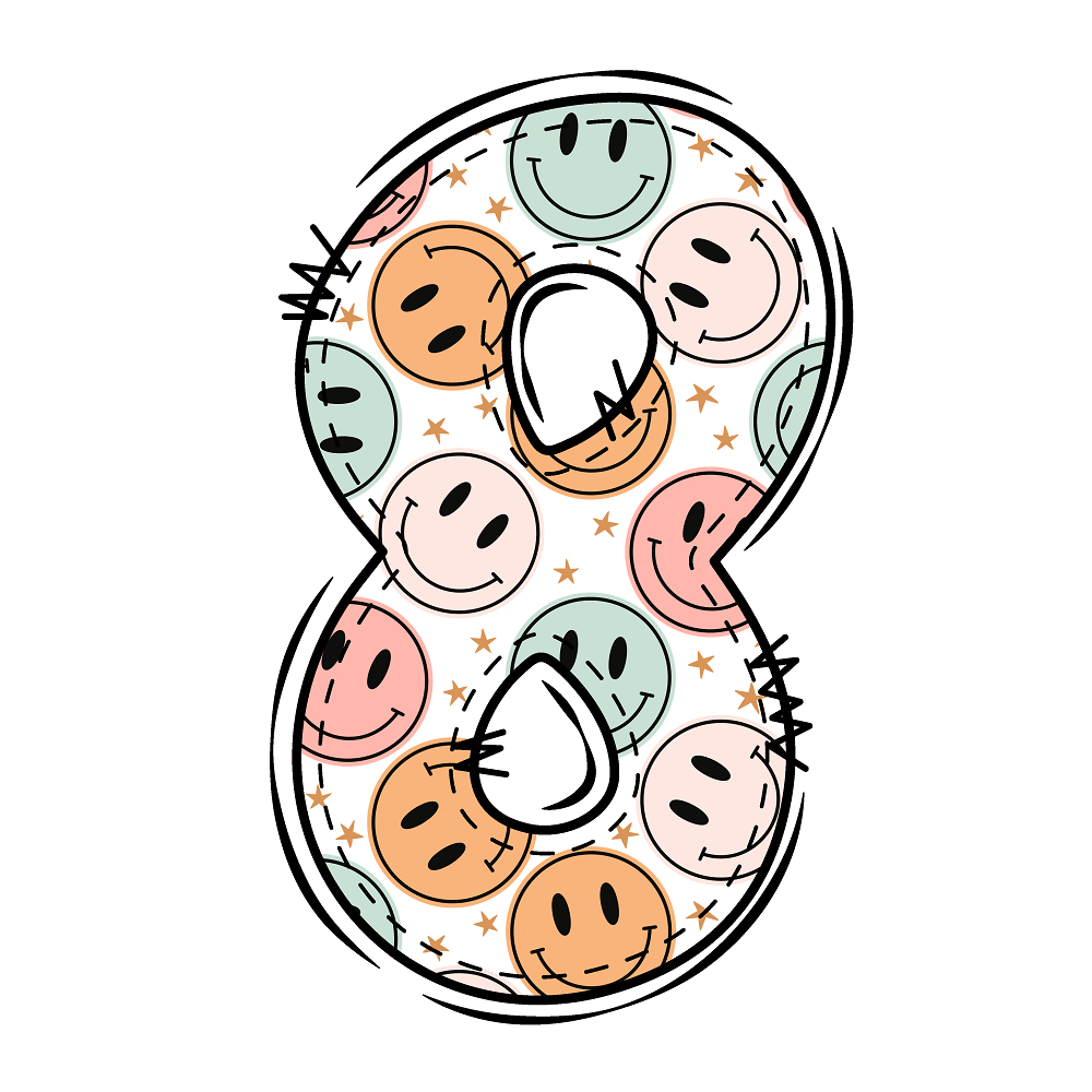 The Groovy Doodle Smiley ''8'' Fabric Panel is a part of the Groovy Doodle Alphabet Fabric Collection printed by Sewing Parts Online. Digitally Printed on 100% cotton.