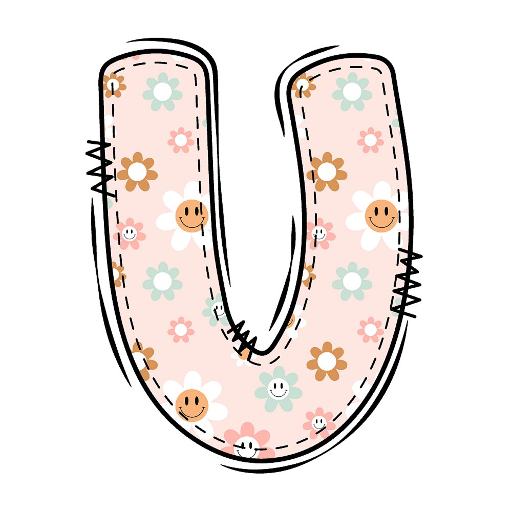 The Groovy Doodle Smiley Flowers ''U'' Fabric Panel is a part of the Groovy Doodle Alphabet Fabric Collection printed by Sewing Parts Online. Digitally Printed on 100% cotton.