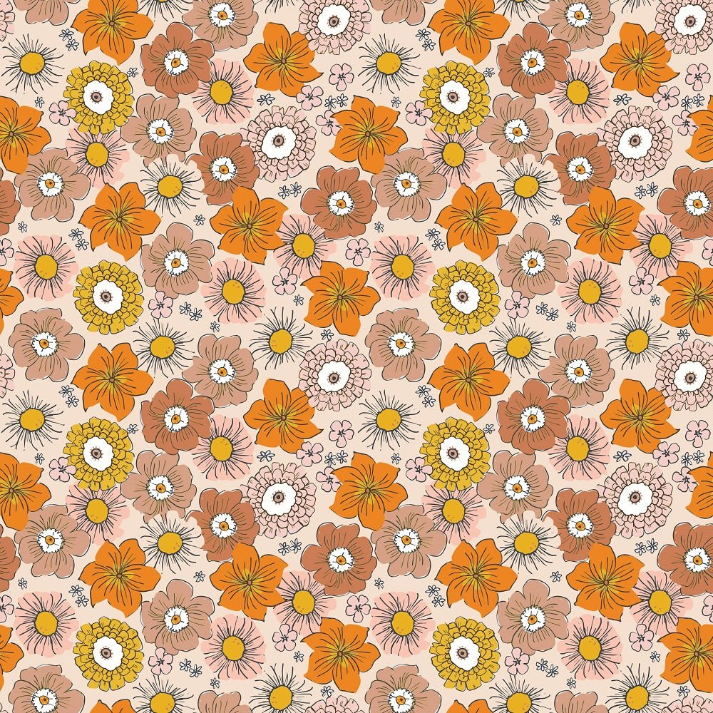 The Groovy Garden Flowers 4 Fabric is a part of the Groovy Garden Fabric Collection printed by Sew Creative Fabrics. Digitally Printed on 100% cotton.