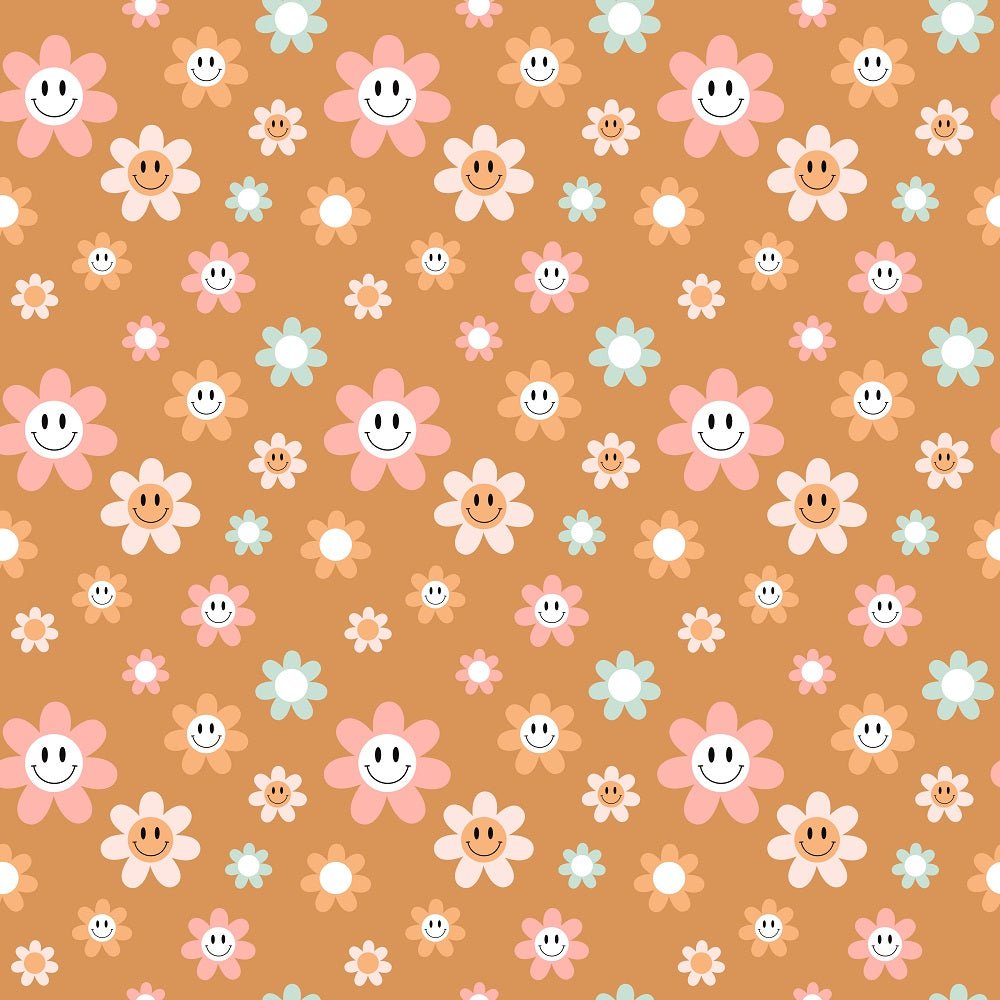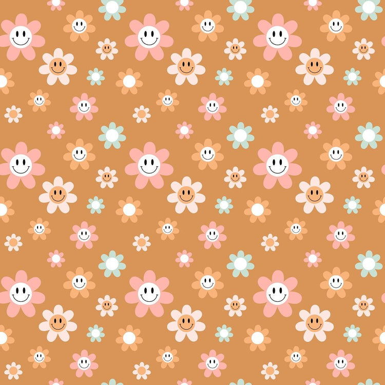 The Brown Groovy Smiley Flowers Fabric is part of the Groovy Smiley Fabric Collection printed by Sew Creative Fabrics. Digitally Printed on 100% cotton.