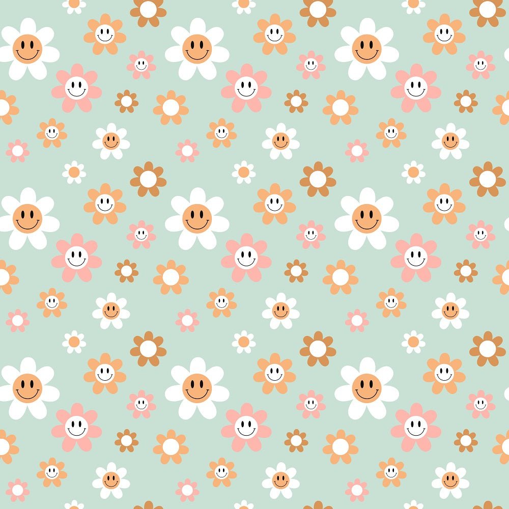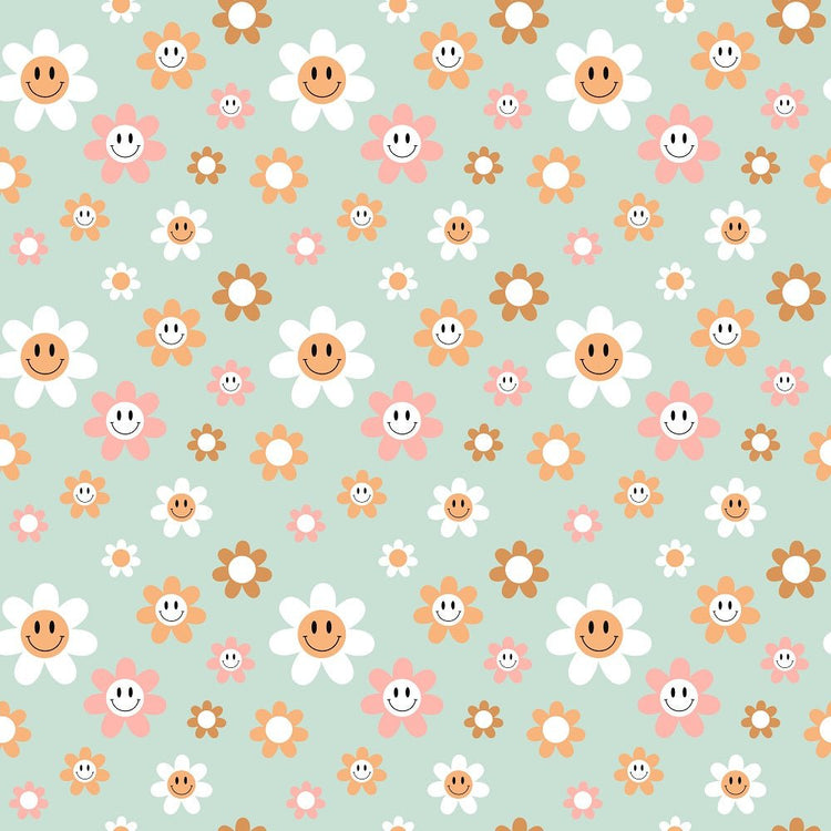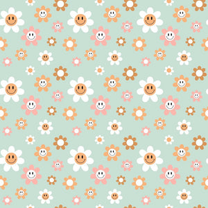The Green Groovy Smiley Flowers Fabric is part of the Groovy Smiley Fabric Collection printed by Sew Creative Fabrics. Digitally Printed on 100% cotton.