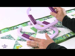 The Gypsy Quilter Fabulous Fabric Glides hold the fabric so you do not have to. These lightweight semi-hoops help control fabric while you are free-motion quilting. The Gypsy Quilter Fabulous Fabric Glides have a rubberized base that will grip the material and retain the desired fabric tension in all directions while preventing bunching. Since the Fabulous Fabric Glides do not need extra pressure applied, these semi-hoops will reduce hand, shoulder, back, and wrist fatigue. Included in each package, you get a small and large Fabulous Fabric Glide. The small glide has an inside quiltable space of 5-1/2" squared, and the large glides quiltable space measures 7-1/4" squared.