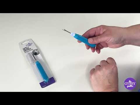 The Gypsy Quilter 5-1/2" (with cover) LED Seam Ripper is ideal for ripping out stitches, removing threads, and opening buttonholes. A brilliant light illuminates the area you're working on with just a flick of the quick on/off button. It has a transparent cap that protects it when not in use and a fine, sharp blade with a safety ball to safeguard the material. The handle's top has ridges that improve grip and control while you work. It also includes three G3-A batteries. Please note that the first time you use the Lighted Seam Ripper, you will need to open the battery cover to remove the white tab.