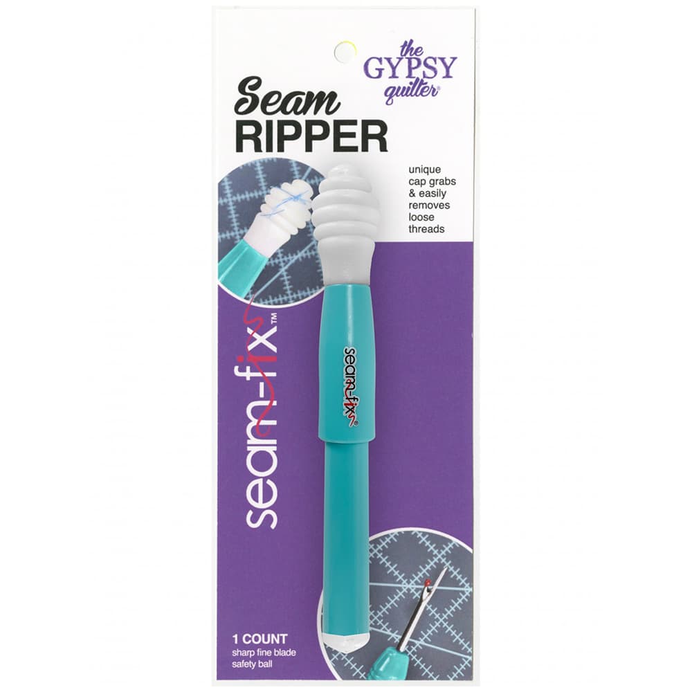 The Gypsy Quilter's Seam-fix Seam Ripper is two tools in one! You have a sharp, fine blade with a safety ball on one end that effortlessly cuts through seams, and on the other end, an innovative plastic tip that grabs and removes threads. This ergonomic seam ripper is easy to use and available in multiple colors.
