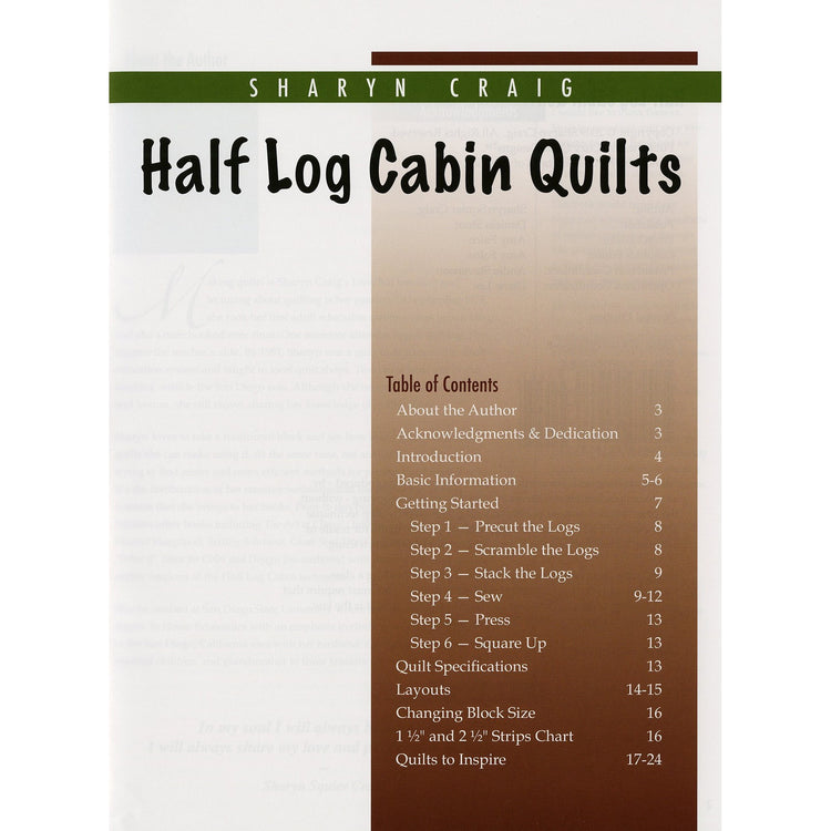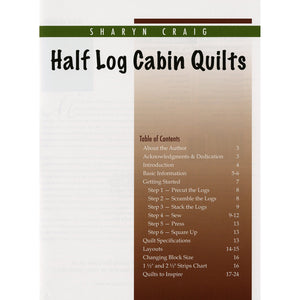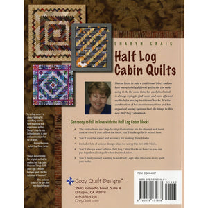 This Half Log Cabin Quilts book by author Sharyn Craig will make you fall in love with the Half Log Cabin quilt block! Sharyn loves to take a traditional block and see how many different quilts she can make using it. She also likes to try to find easier and more efficient ways for piecing these blocks. She has been perfecting this fantastic and versatile block for many years and now joins Cozy Quilt Designs to bring you this wonderful new book. The instructions and step-by-step illustrations are clear and concise so, if you follow the steps you'll make quilts in record time! This book includes tons of unique design ideas for using this fun block. You'll find yourself always wanting to have Half Log Cabin blocks on hand so you can put together a fast quilt when the need arises. You may even find yourself wanting to add Half Log Cabin blocks to every quilt you make!