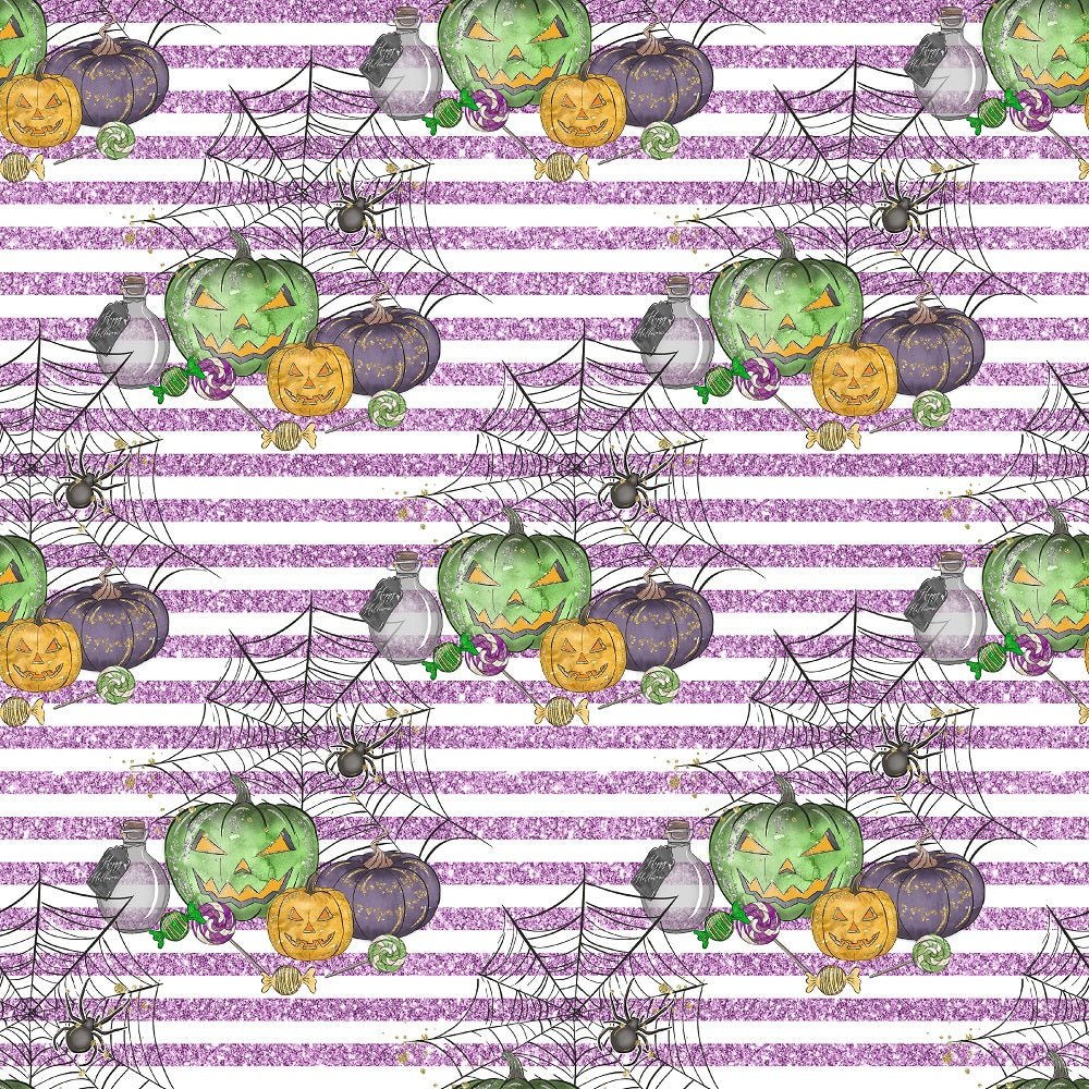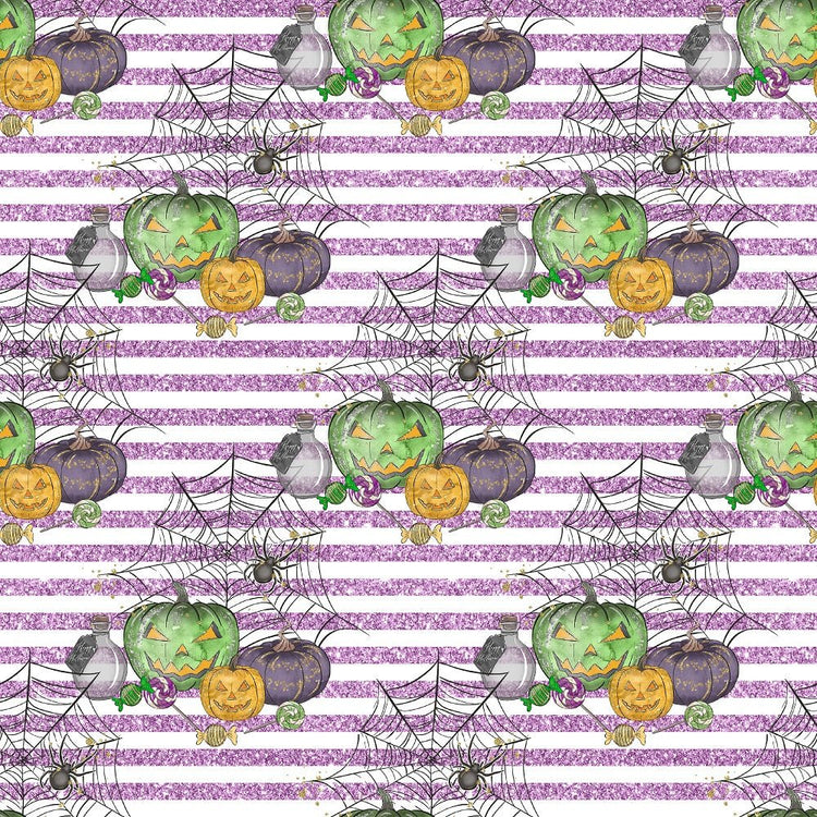 The Purple Halloween Candy Elements on Stripes Fabric is part of the Halloween Candy Fabric Collection printed by Sew Creative Fabrics. Digitally Printed on 100% cotton.