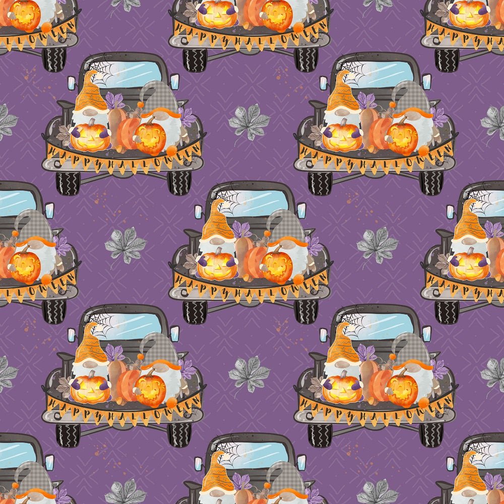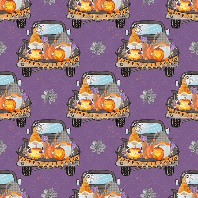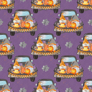 The Dark Purple Halloween Gnomes on Truck Fabric is part of Halloween Gnomes Fabric Collection printed by Sew Creative Fabrics. Digitally Printed on 100% cotton.