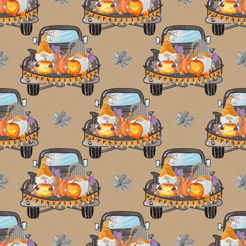The Tan Halloween Gnomes on Truck Fabric is part of Halloween Gnomes Fabric Collection printed by Sew Creative Fabrics. Digitally Printed on 100% cotton.
