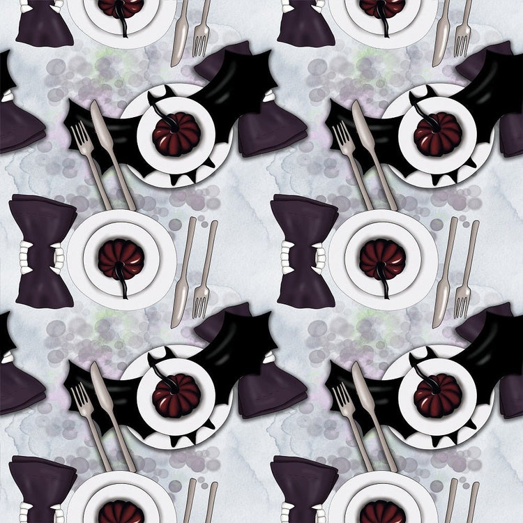 The Halloween Please! Halloween Dinner Fabric is part of the Halloween Please! Fabric Collection printed by Sew Creative Fabrics. Digitally Printed on 100% cotton.