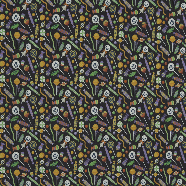 Halloween Trick or Treat Candy Allover Fabric - Black