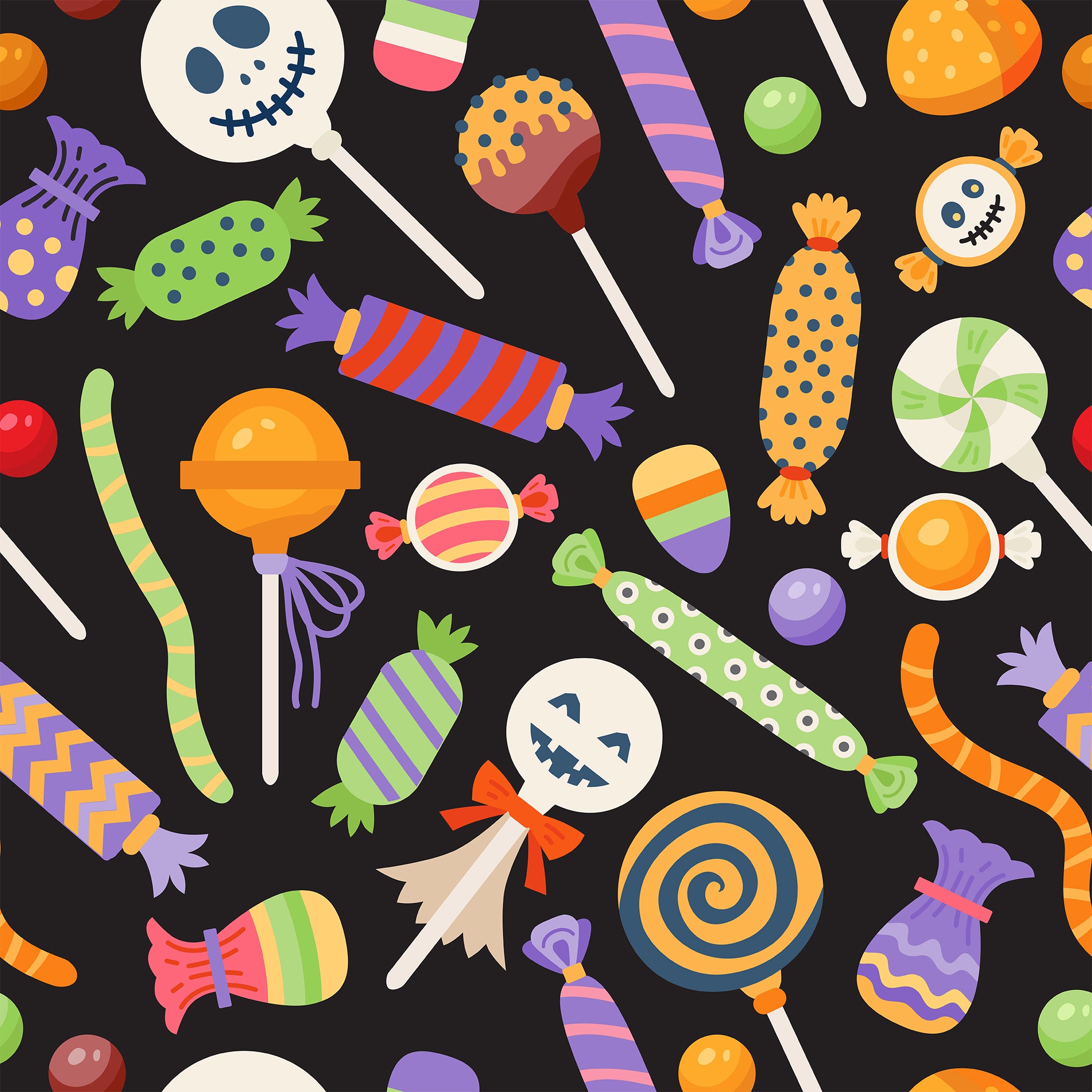 Halloween Trick or Treat Candy Allover Fabric - Black Details