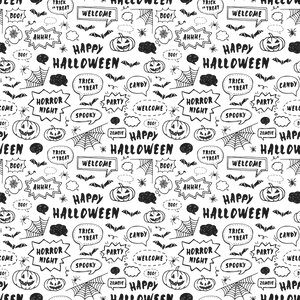 The Black and White Halloween Words Fabric is part of the Halloween Fabric Collection printed by Sew Creative Fabrics. Digitally Printed on 100% cotton.