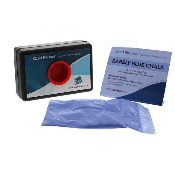 Hancy's Pounce Pads are a must-have tool for free motion quilting! Pounce Pad Chalks are available in a variety of colors for use with both dark and light fabrics. These pounce pads are intended for use with Hancy's Quilt Stencils. To use, lay your desired stencil on your fabric and gently brush over the screen with your chalked pounce pad. When you remove the stencil, a perfectly chalked quilt design will be visible. Quilt over the chalk design then remove the excess chalk by either washing it away or brushing it away with a lint brush. White chalk can be ironed away or heated away with a hairdryer. DO NOT iron colored chalks as they contain dye that will heat set into fabrics.