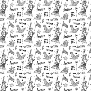 The Hand Drawn American Icons Fabric is a part of the Sweet Land Of Liberty Fabric Collection printed by Sew Creative Fabrics. Digitally Printed on 100% cotton and measures 42-43" wide.