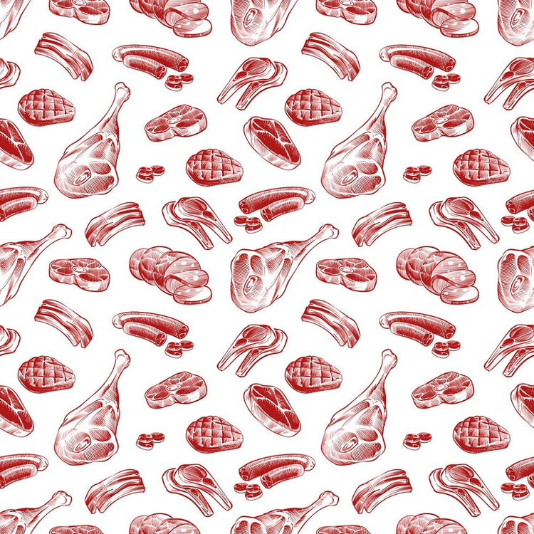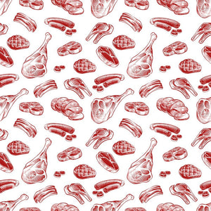 The Hand drawn Assorted Meats Fabric is printed by Sew Creative Fabrics. Digitally Printed on 100% cotton.