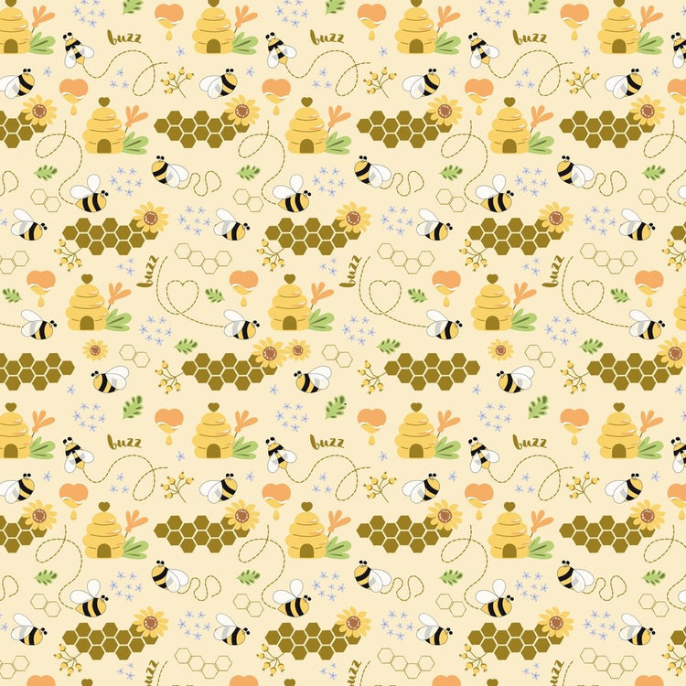 The Tan Hand Drawn Cartoon Bee Colony Fabric is part of the Sweet As Can Bee Fabric Collection printed by Sew Creative Fabrics. Digitally Printed on 100% cotton.