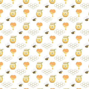 The Hand Drawn Cartoon Bee Sweet Honey Jar Fabric is part of the Sweet As Can Bee Fabric Collection printed by Sew Creative Fabrics. Digitally Printed on 100% cotton.