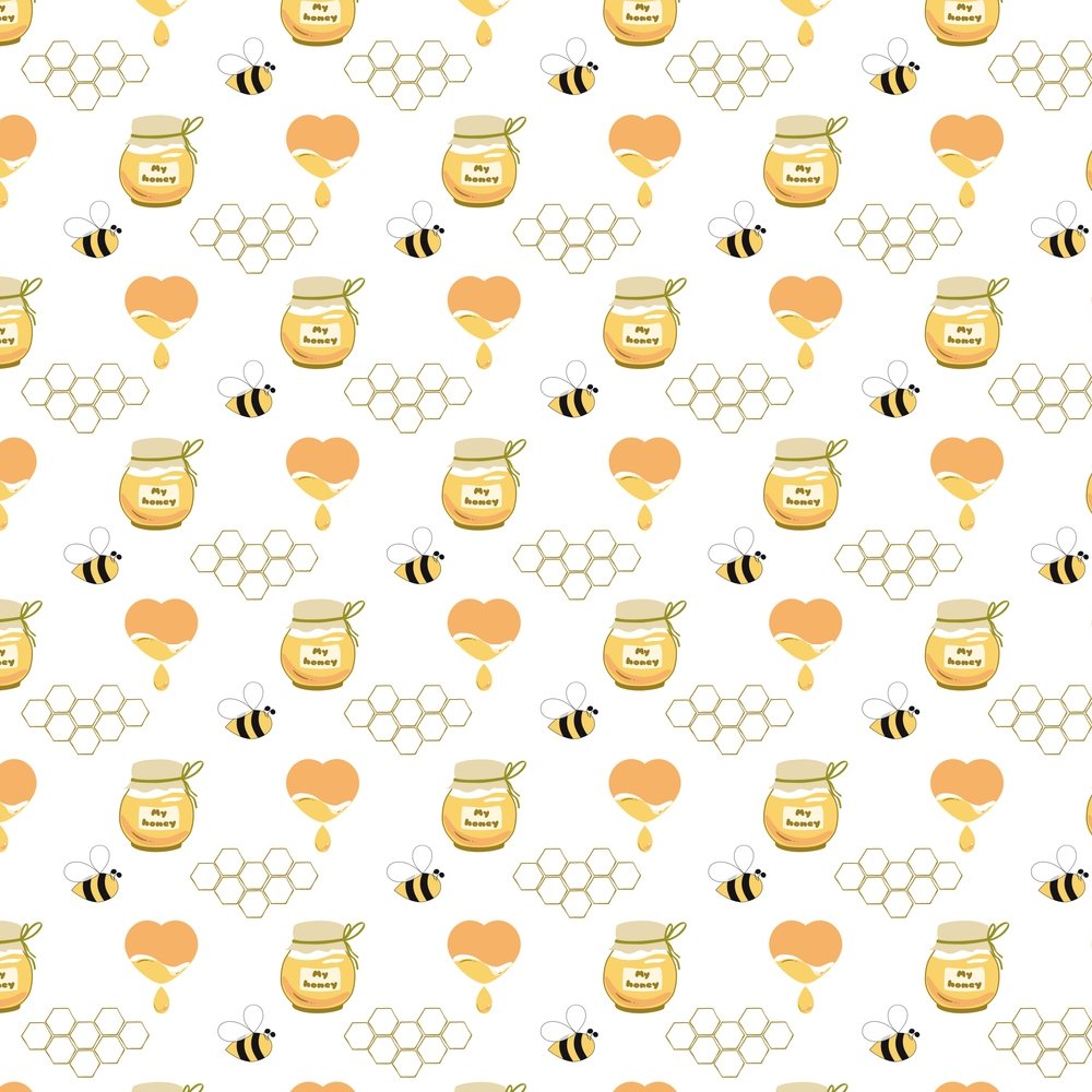 Hand Drawn Cartoon Bee Sweet Honey Jar Fabric - White