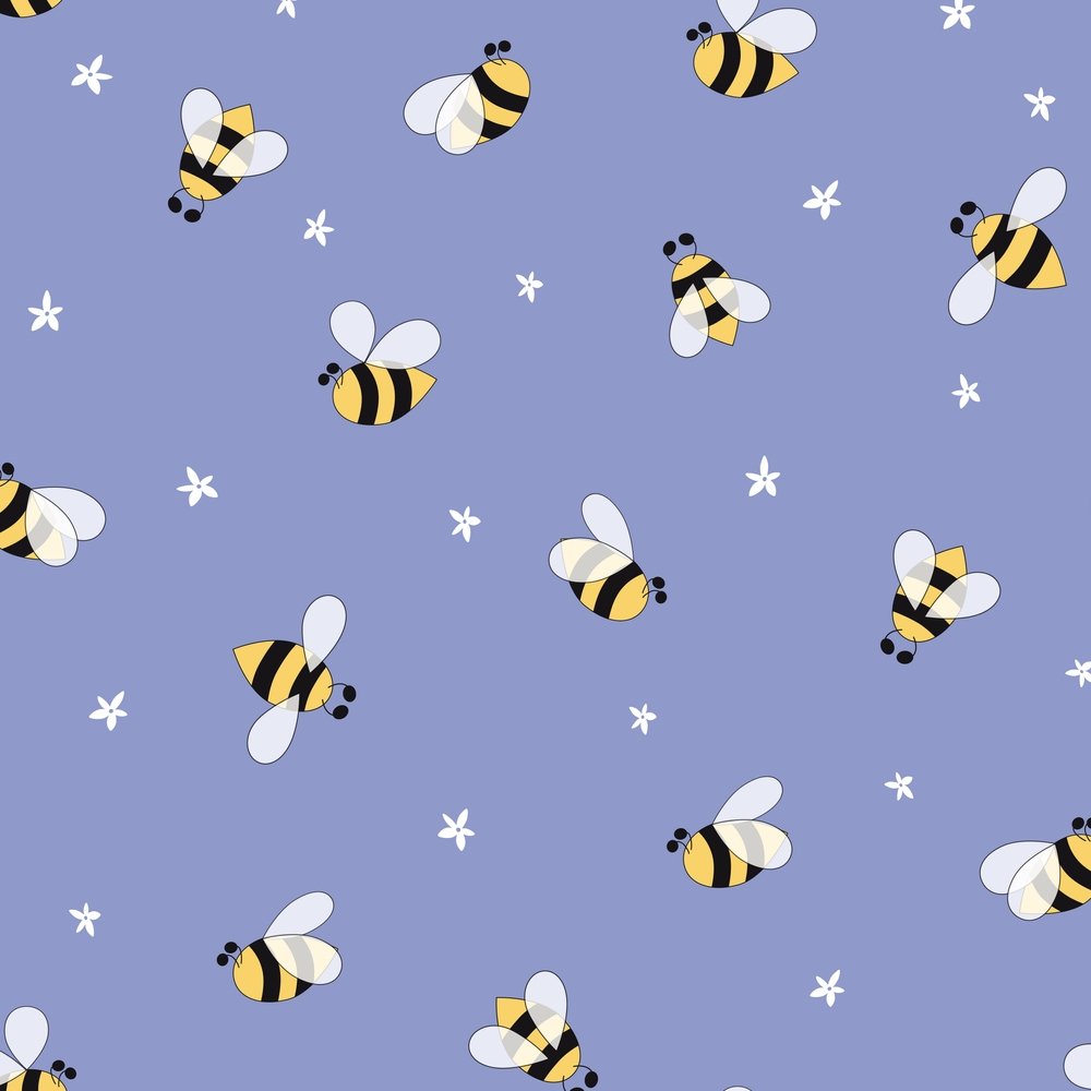 The Violet Hand Drawn Cartoon Floral And Bees Fabric is part of the Sweet As Can Bee Fabric Collection printed by Sew Creative Fabrics. Digitally Printed on 100% cotton.