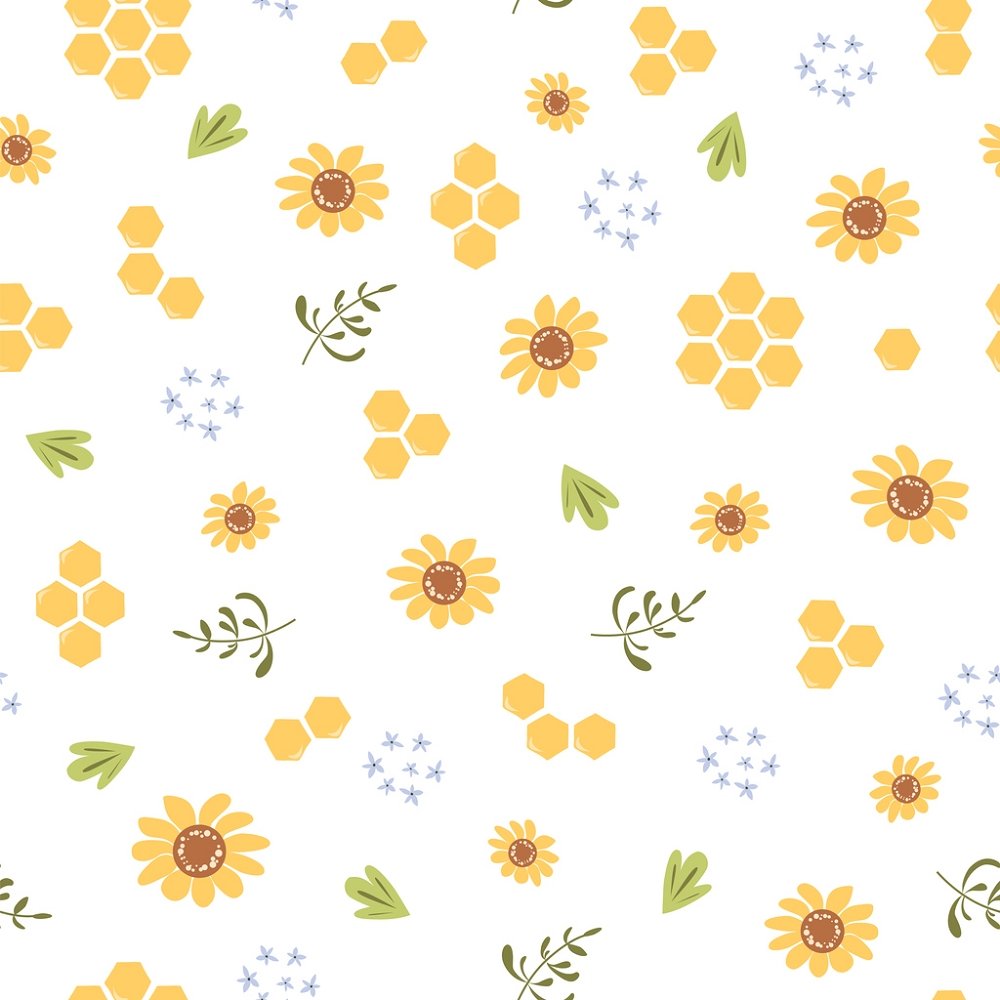 The White Hand Drawn Cartoon Floral Fabric is part of the Sweet As Can Bee Fabric Collection printed by Sew Creative Fabrics. Digitally Printed on 100% cotton.