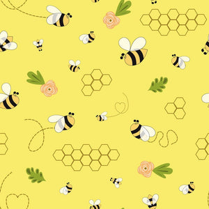 The Yellow Hand Drawn Cartoon Floral Honeycomb & Bee Fabric is part of the Sweet As Can Bee Fabric Collection printed by Sew Creative Fabrics. Digitally Printed on 100% cotton.