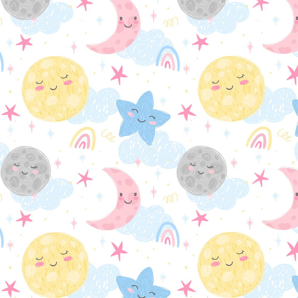 Hand Drawn Cartoon Moon & Stars Fabric Details