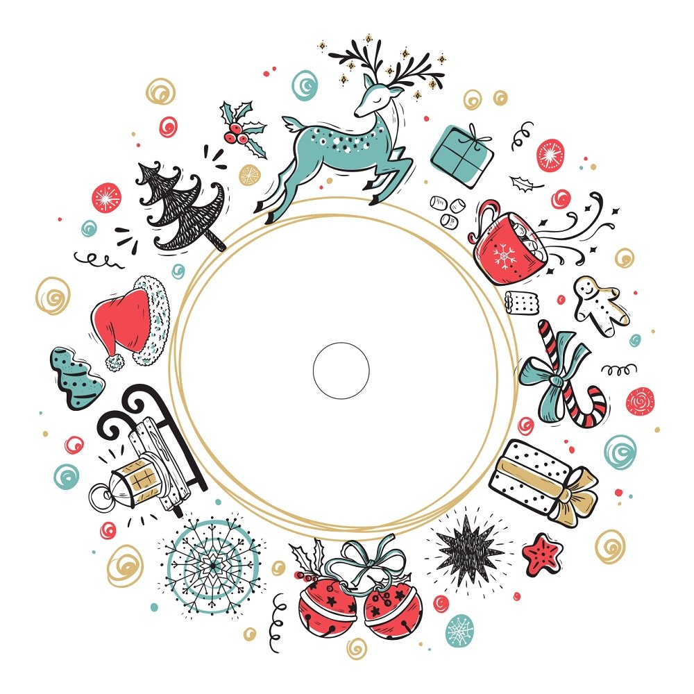 Hand Drawn Christmas Elements Tree Skirt Fabric Panel