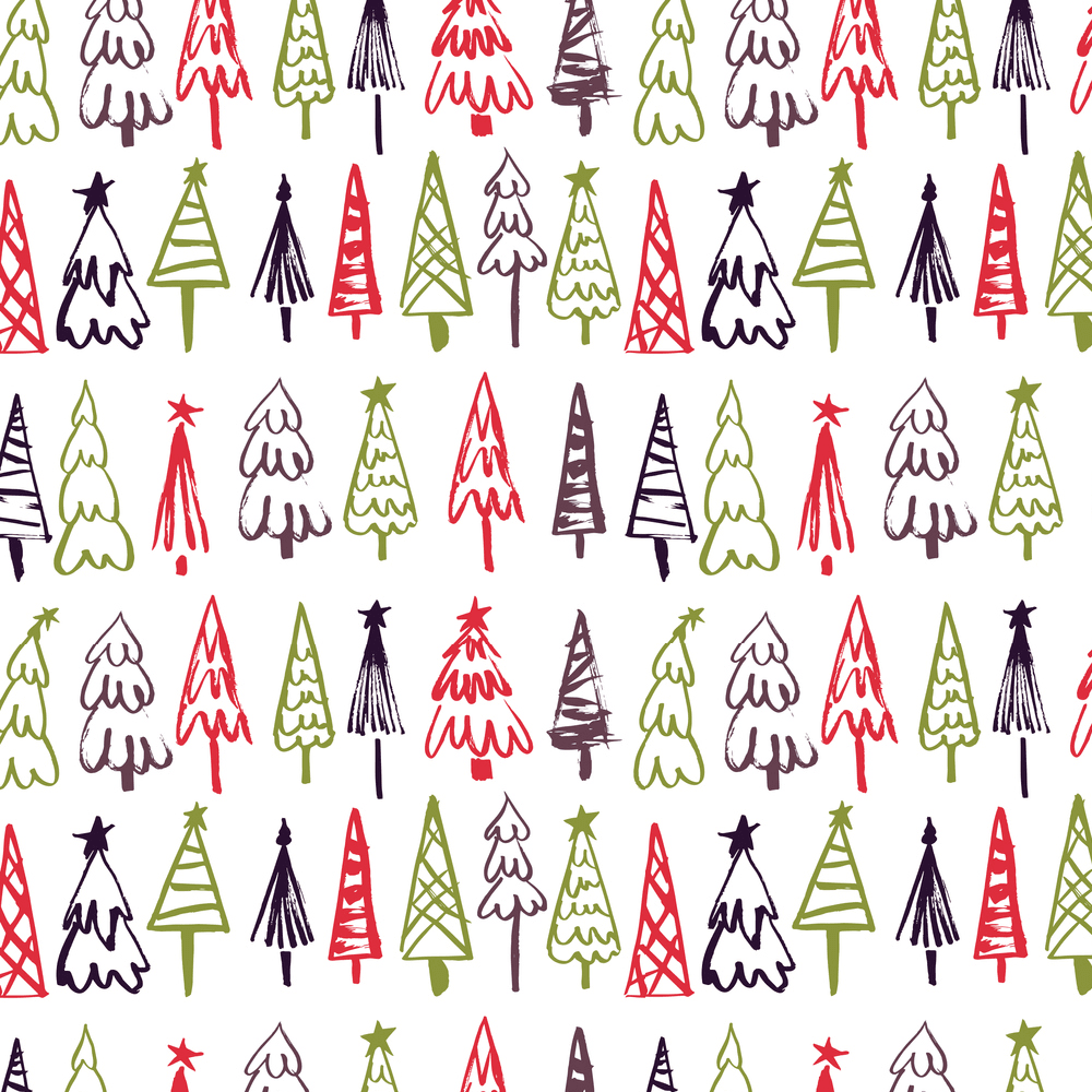 Hand Drawn Christmas Trees Fabric - Multi Details