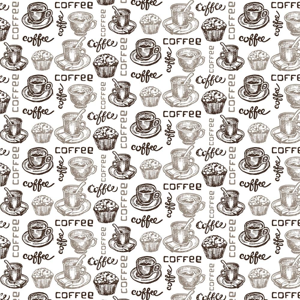 Hand Drawn Coffee With Muffin Fabric - Brown