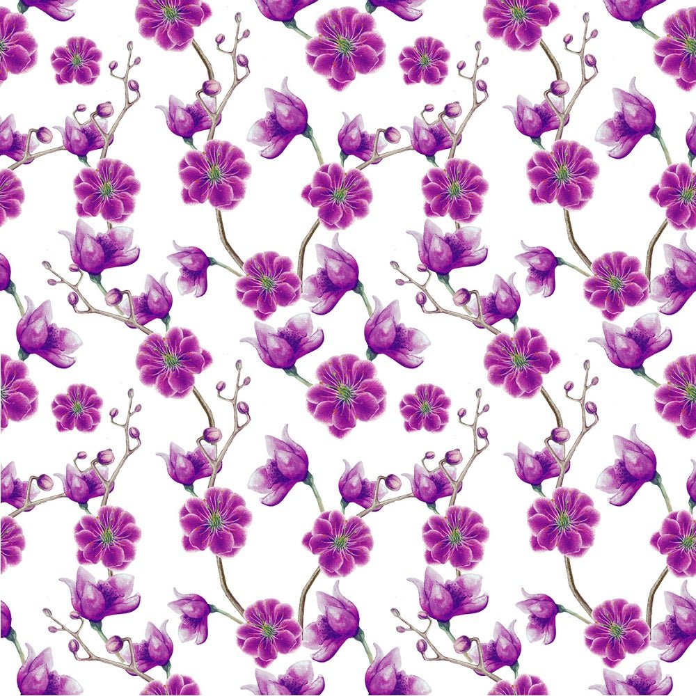 Hand Drawn Elegant Dark Purple Floral Fabric