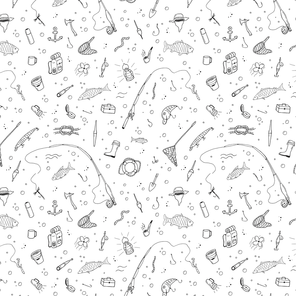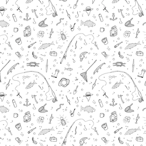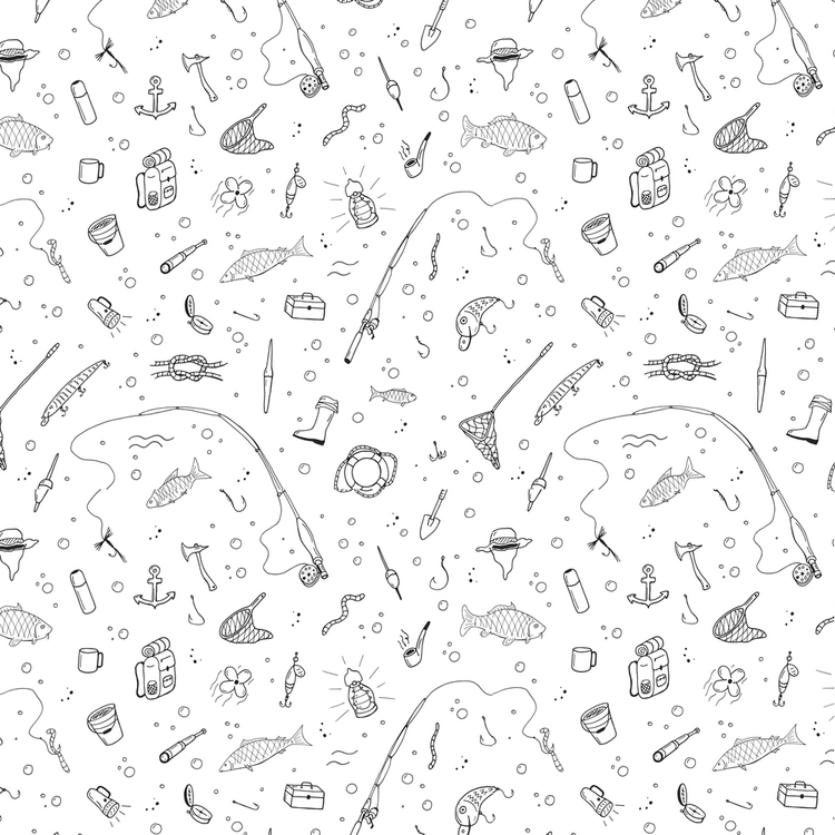 Hand Drawn Fishing Gear Fabric Details