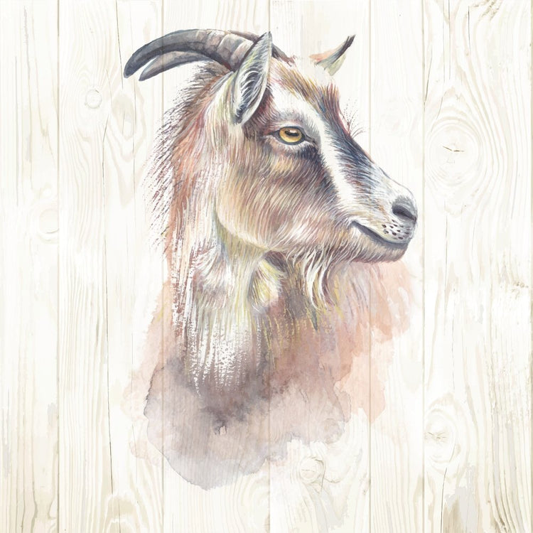 The Hand Drawn Goat with Horns on Wood Fabric Panel printed by Sewing Parts Online. Digitally Printed on 100% cotton. This panel is available in 6 different sizes: