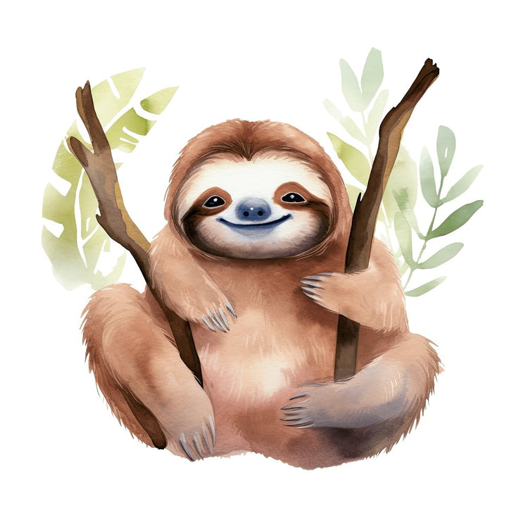 Hand Drawn Sloths Portrait #12 Fabric Panel