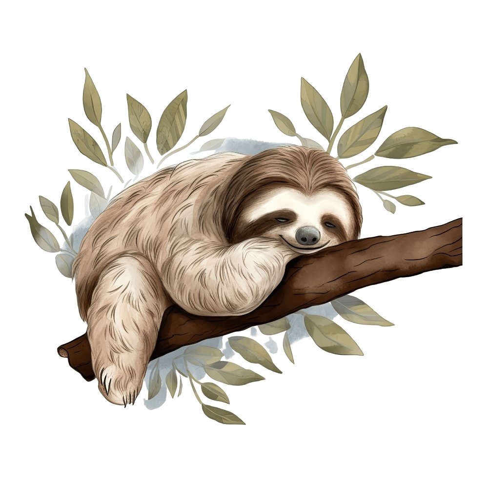 Hand Drawn Sloths Sleeping #7 Fabric Panel Details