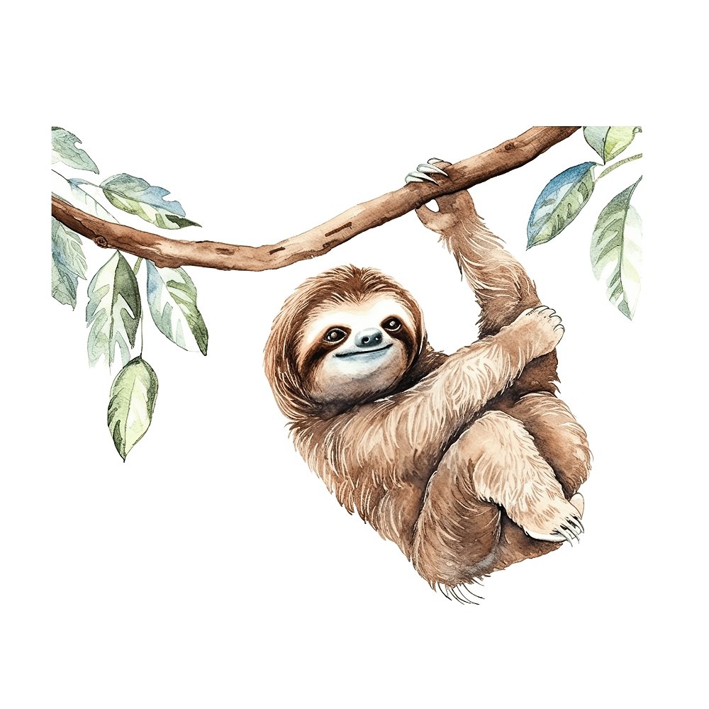 Hand Drawn Sloths Swinging #2 Fabric Panel Details