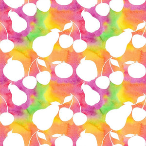 The Hand-Painted Fruit Silhouette on Grunge Fabric is a part of the Watercolor Fruit Pack Fabric Collection printed by Sew Creative Fabrics. Digitally Printed on 100% cotton.