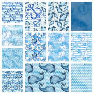 Hand Painted Nautical Fat Quarter Bundle - 12 Pieces