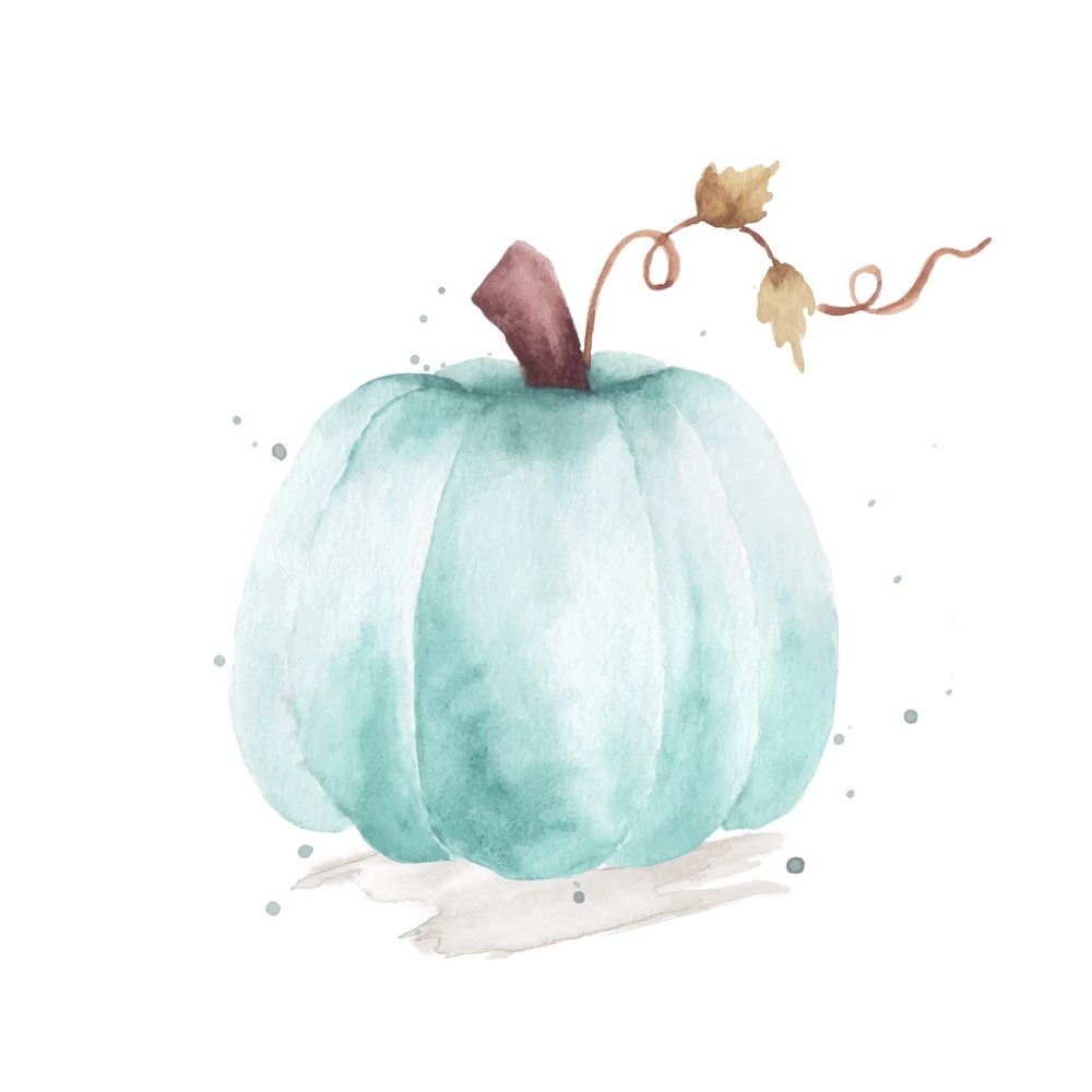 Hand Painted Pumpkin Fabric Panel - Blue