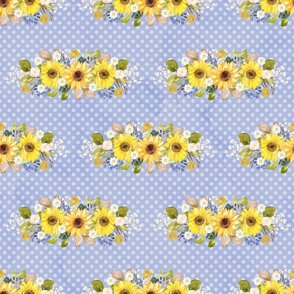 Hand Painted Sunflowers on Dots Fabric - Blue