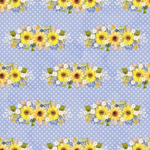 The Blue Hand Painted Sunflowers on Dots Fabric is part of the Hand Painted Sunflowers Fabric Collection printed by Sew Creative Fabrics. Digitally Printed on 100% cotton.