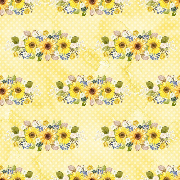 The Yellow Hand Painted Sunflowers on Dots Fabric is part of the Hand Painted Sunflowers Fabric Collection printed by Sew Creative Fabrics. Digitally Printed on 100% cotton.
