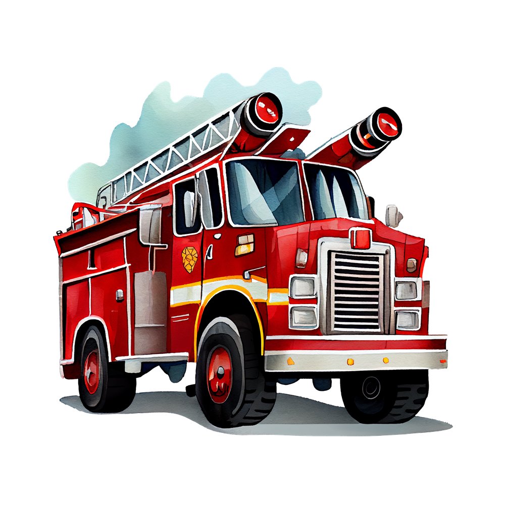 The Hand painted Watercolor Fire Truck 1 Fabric Panel is a part of the Hand Painted Watercolor Firetrucks Fabric Collection printed by Sewing Parts Online. Digitally Printed on 100% cotton.