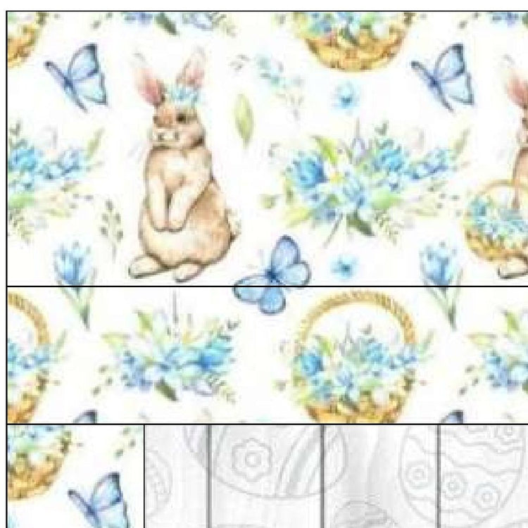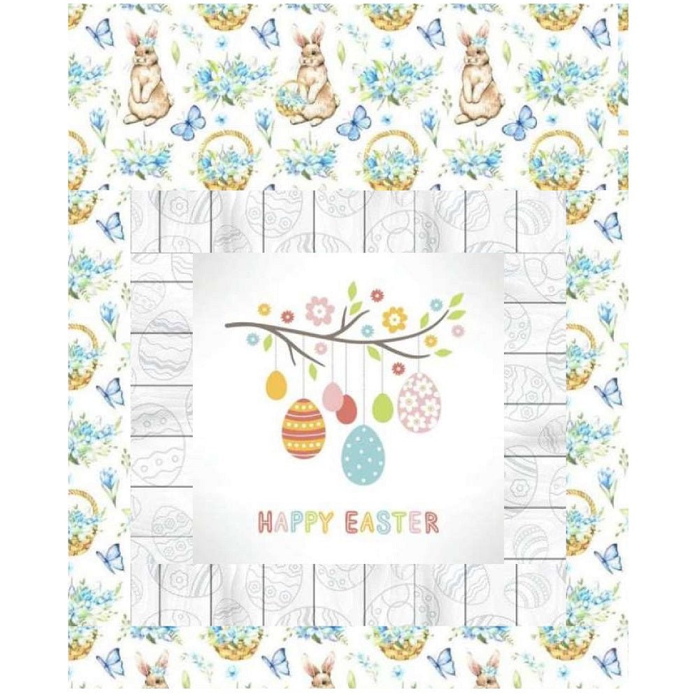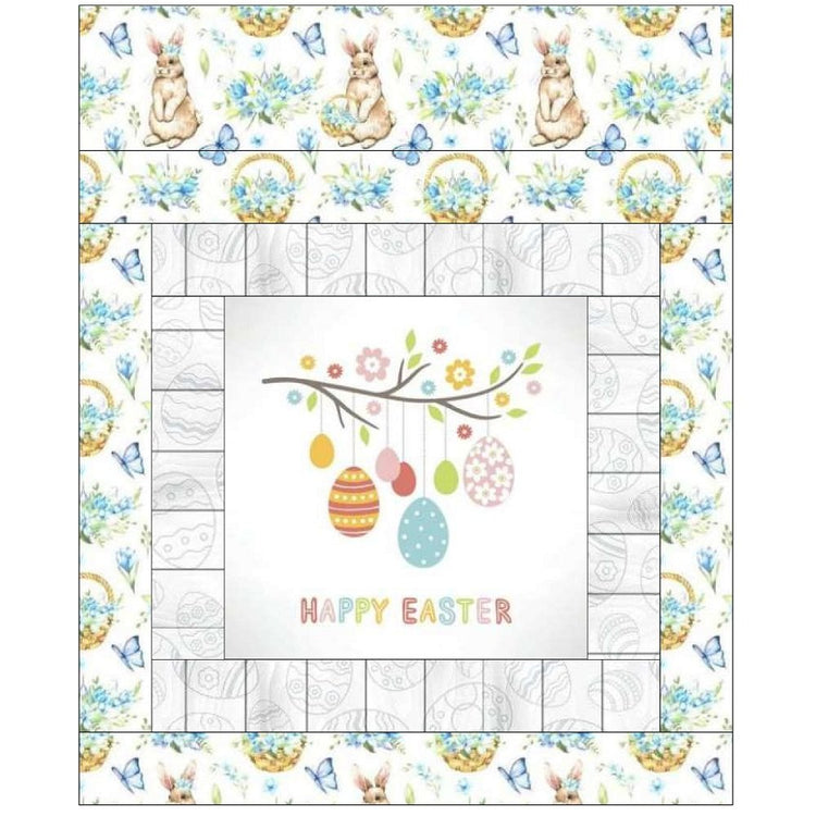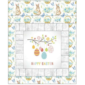 The Happy Easter Variation 2 Mini Wall Hanging includes the instructions, one fat quarter and one layer cake. It has two borders around a 4 1/2" panel with a flap for folding a rod pocket for the dowel rod. Batting/interfacing/lining, dowel rod, and ribbon are sold separately. The finished size of this wall hanging is 9" x 9". Level - Beginner. Fast project to make as a gift for someone, or for your own enjoyment.