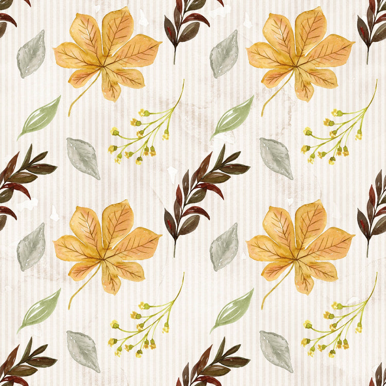 The Happy Fall Leaves on Stripes Fabric is part of the Happy Fall Fabric Collection printed by Sew Creative Fabrics. Digitally Printed on 100% cotton.
