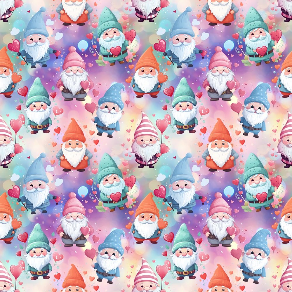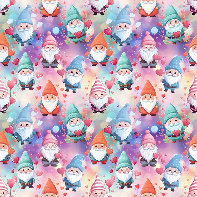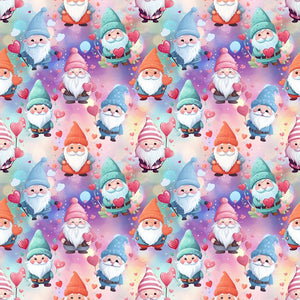 Happy Gnomes with Heart Balloon Fabric