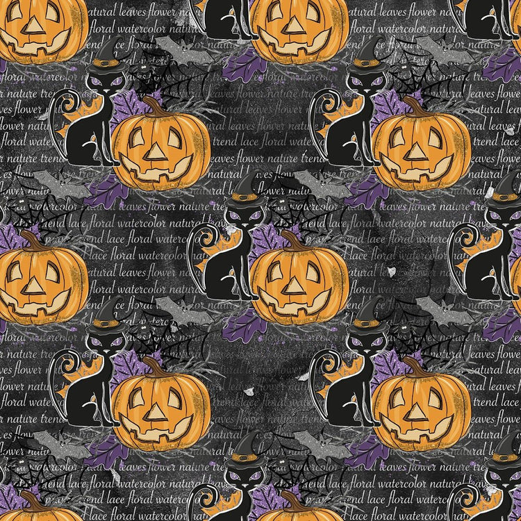 The Gray Happy Halloween Cat and Pumpkin on Words Fabric is part of the Happy Halloween Fabric Collection printed by Sew Creative Fabrics. Digitally Printed on 100% cotton.
