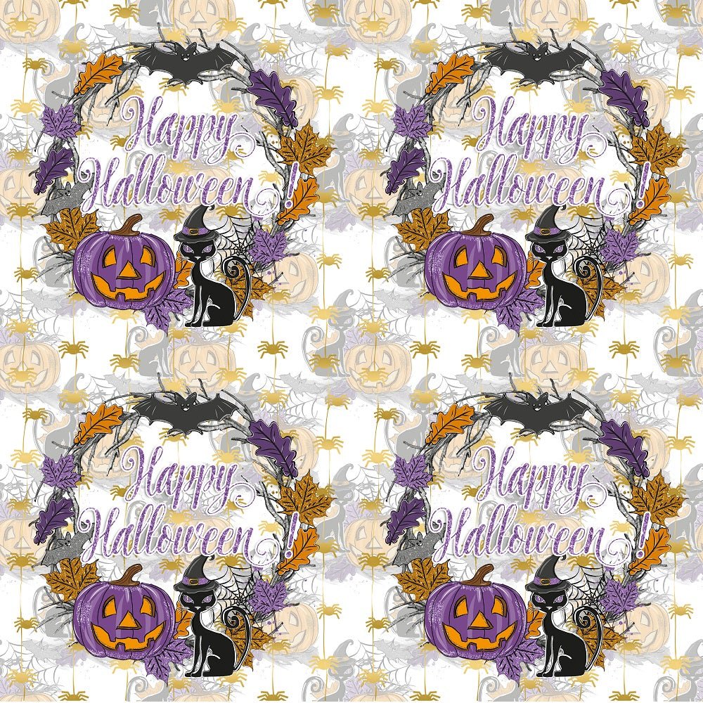 The White Happy Halloween Wreath Fabric is part of the Happy Halloween Fabric Collection printed by Sew Creative Fabrics. Digitally Printed on 100% cotton.