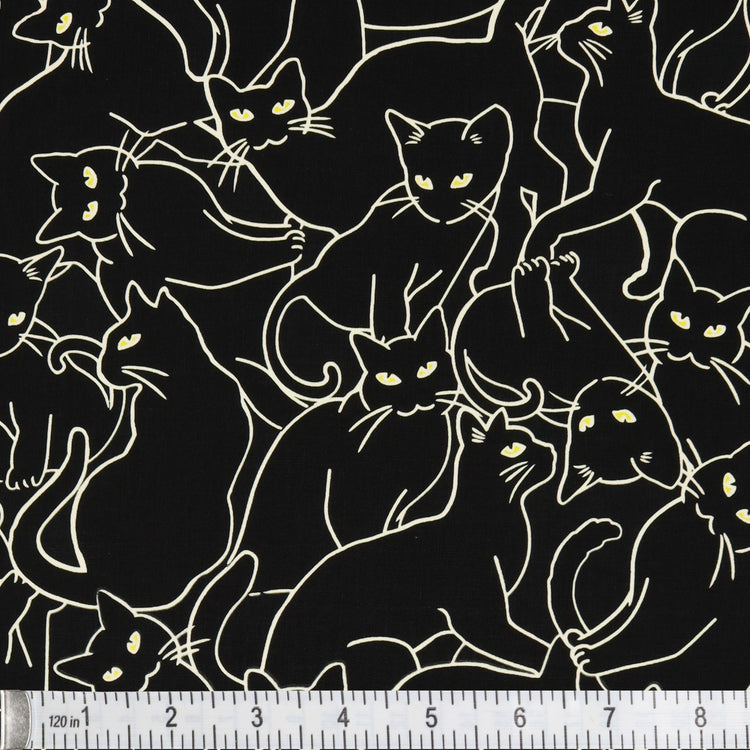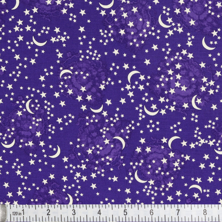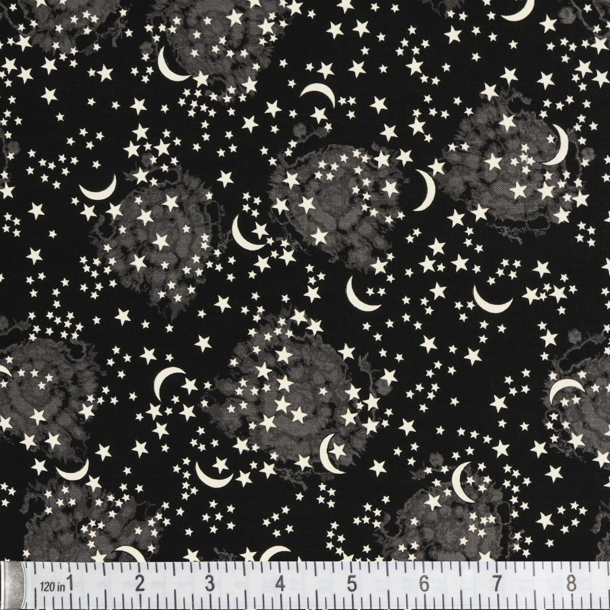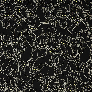 Each print in the Happy Hauntings collection—except for the checkered designs—features glow-in-the-dark accents that come to life when the lights go out. From twinkling stars to glowing pumpkins and spooky silhouettes, these details add a magical touch to any Halloween project. To recharge the glow, simply place the fabric under a bright light source like sunlight, a lamp, or a flashlight, or use a black light for an instant eerie effect!
